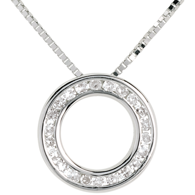 Ein Gleichgewicht zwischen strahlendem Gold und funkelnden Diamanten, ein himmlisches Collier in Ringform. Mit Kette 42 cm + Verlängerung von 3 cm; 375/-. 22 Diamanten : 0.11 Karat - Weißgold (375/-): 1.8 g. Weitere Abmessungen