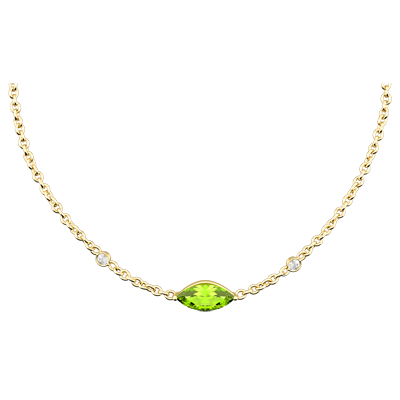 Halskette Auge des Orients - Peridot und Diamanten - 9 Karat Gelbgold