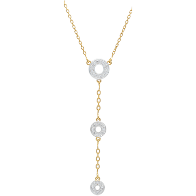 Eine Kreistrilogie aus Weißgold mit Diamanten schmiegt sich an Ihr Dekollté. Ein zeitloser Blickfang. Mit Kette 42 cm + Verlängerung von 3 cm; 375/-. 16 Diamanten : 0.08 Karat - Weiß-und Gelbgold (375/-): 2.2 g. Weitere Abmessungen
