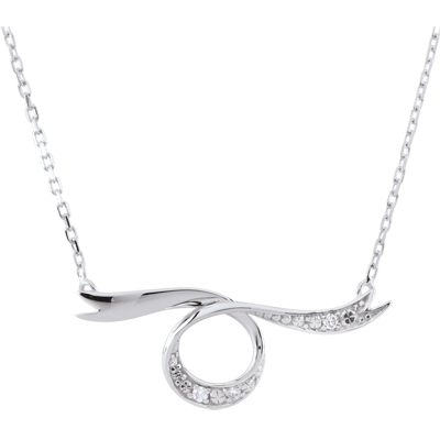 Ein feines Band aus Gold und Diamanten um eine Schleife der Ewigkeit zu bilden. Mit Kette 42 cm + Verlängerung von 3 cm; 375/-. 3 Diamanten : 0.02 Karat - Weißgold (375/-): 1.8 g. Weitere Abmessungen