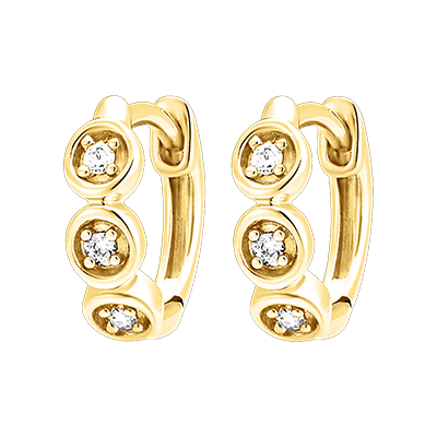 Creolen Frische - Trio Diamanten - 9 Karat Gelbgold und Diamanten