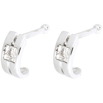 Je ein Solitär in doppelrangigem Weißgold, ein schlichtes, zeitgemäßes Design. 2 Diamanten : 0.03 Karat - Weißgold (750/-) : 1.20 g. 2 Diamanten : 0.03 Karat - Weißgold (750/-): 1.1 g. Weitere Abmessungen