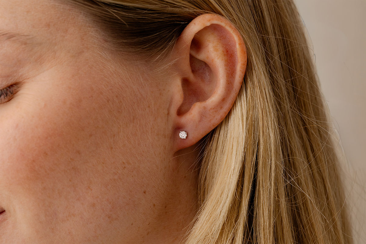 Der funkelnde Diamant in einer 4er Krappenfassung in Weissgold verkörpert zarte Eleganz. 2 Diamanten : 0.3 Karat - Weißgold (750/-): 0.8 g. Weitere Abmessungen