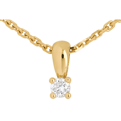 Dieser funkelnde Diamant in einer 4er Krappenfassung verkörpert zarte Eleganz. Ohne Kette. 1 Diamant : 0.11 Karat - Gelbgold (750/-): 0.4 g. Weitere Abmessungen