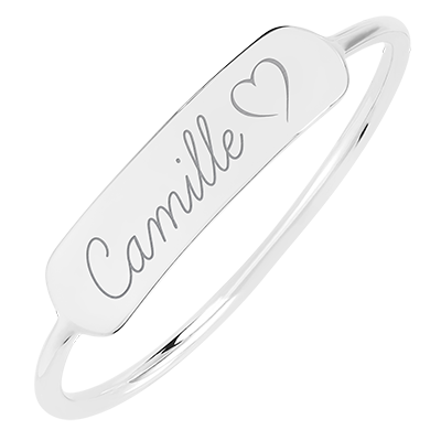Rechteckiger Medaillonring mit Gravur - Weißgold, 9 Karat - Kollektion Lovely Yours - Edenly Yours