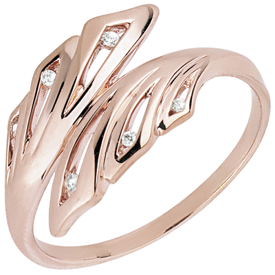 Die klaren Linien der Natur finden sich in der Kurvenform dieses Ringes wieder. Er symbolisiert die Perfektion natürlicher Ursprünglichkeit im Paradies. Dieser Ring wurde von Thais Takase, von der Modeschule ESMOD, entworfen. 6 Diamanten : 0.03 Karat - Rotgold (750/-): 2.4 g. Weitere Abmessungen