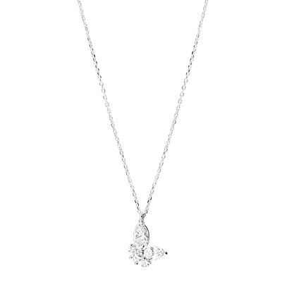 Halskette Mitternachtsschmetterling - Weißgold 9 Karat mit synthetischen Diamanten