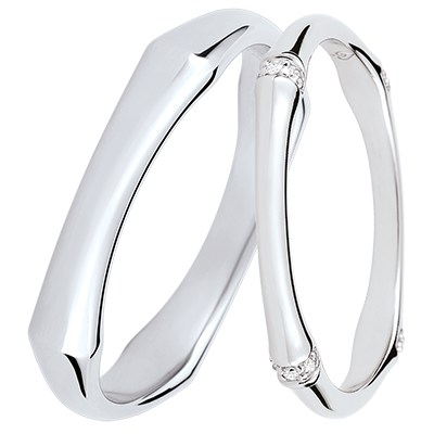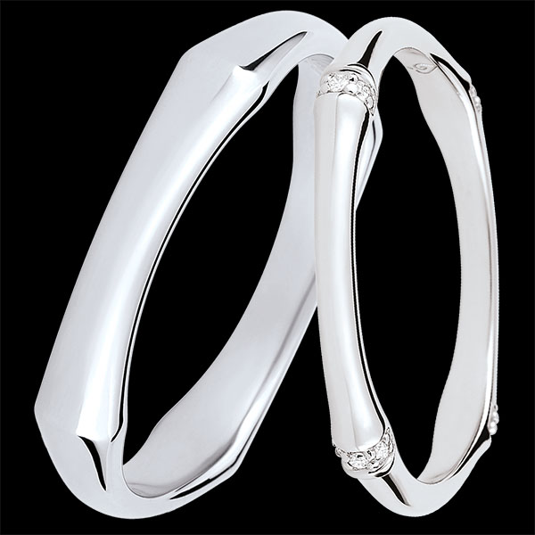 Ein edles Paar Trauringe aus Weißgold, inspiriert von der Zartheit und Robustheit eines Bambuszweigs. Ein exklusives Schmuckstück für Ihre einzigartige Liebesgeschichte. Weißgold (375/-): 0 g. Weitere Abmessungen
