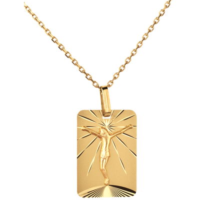 Eine moderner Anhänger mit dem Christus am Kreuz. Ideal für die Taufe, zur Kommunion oder Konfirmation Ohne Kette. Gelbgold (750/-): 1.1 g. Weitere Abmessungen