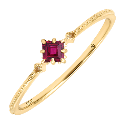 PARADIESVOGEL NR. 30Verlobungsring - Gelbgold 375/-(9Kt) - Synthetischer Rubin ID : 3956