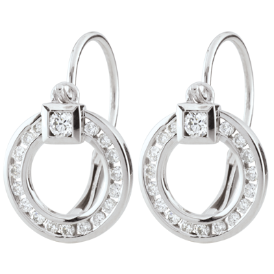 Kreisförmige Ohrhänger, besetzt mit Diamanten.
