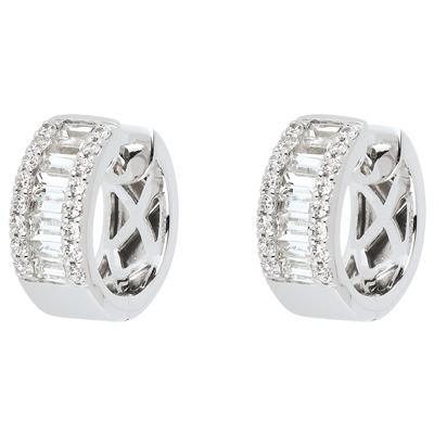 Drei Diamantreihen in Brillant- und Baguetteschliff, die im Zusammenspiel mit dem hochwertigen Weißgold, einen strukturellen und aufwendigen Effekt erzielen. 48 Diamanten : 1.38 Karat - Weißgold (750/-): 7.6 g. Weitere Abmessungen