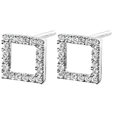 Die Perfektion eines quadratischen Rahmens, der durch ein Diamantenpave besonders hervorgehoben wird und ein Paar schlichte und grafische Ohrringe entstehen lässt. 40 Diamanten : 0.19 Karat - Weißgold (375/-): 1 g. Weitere Abmessungen