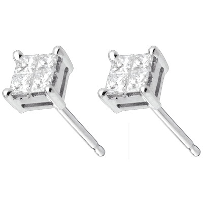 Diese prachtvollen Diamantohrstecker erinnern an ein funkelndes Schachbrett. Ein architektonisches Meisterwerk. Diamant : 0.34 Karat - Weißgold (750/-): 1 g. Pavé aus natürlichen Diamanten : - Weitere Abmessungen