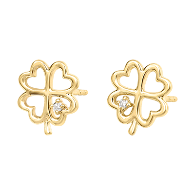 Ohrstecker Trèfle enchanté – 9-karätiges Gelbgold und synthetische Diamanten