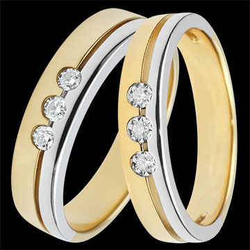 Ein elegantes Paar Trauringe aus Gelb- und Weißgold, veredelt mit einer stilvollen Diamant-Trilogie. Weiß-und Gelbgold (375/-): 0 g.Weitere Abmessungen