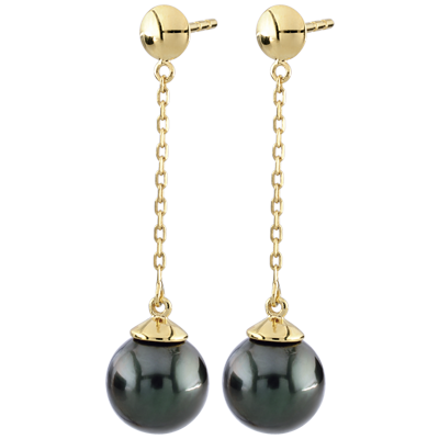 Zwei wunderschöne Perlen hängen an einer Kette aus Gold.