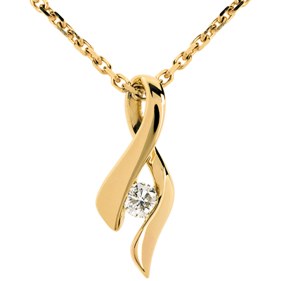 Dieser verschlungene Anhänger aus Gelbgold geschmückt mit einem funkelnden Diamanten wirkt endlos.