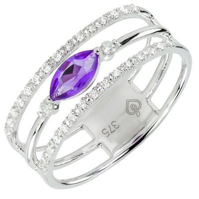 Ring Auge des Orients - Großes Modell - Amethyst und Diamanten - 9 Karat Weißgold