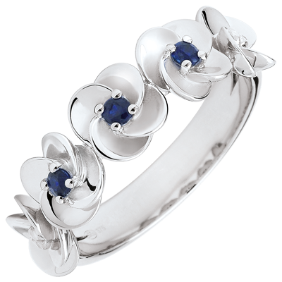 Ring Blüte - Rosenkränzchen - Weißgold und Saphire - 9 Karat