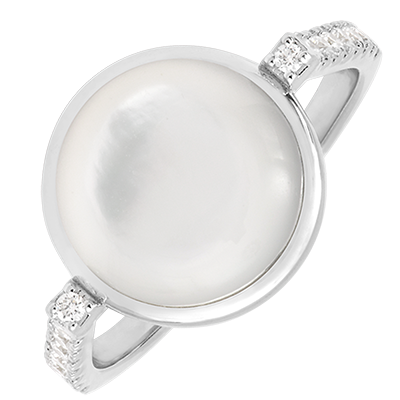 Ring Cabochon Aura Nacrée – 9 Karat Weißgold und Diamanten