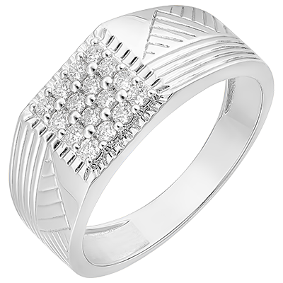 Ring Dämmerschein - Siegelring mit Gravuren - 9 Karat Weißgold und Diamanten