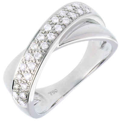 Zwei ineinander schmelzende Ellipsen verziert mit funkelnden Diamanten verkörpern Verbundenheit und Harmonie. 26 Diamanten : 0.26 Karat - Weißgold (750/-): 5.8 g. Weitere Abmessungen