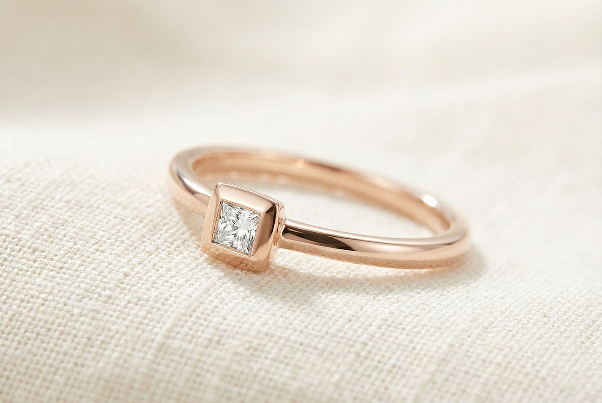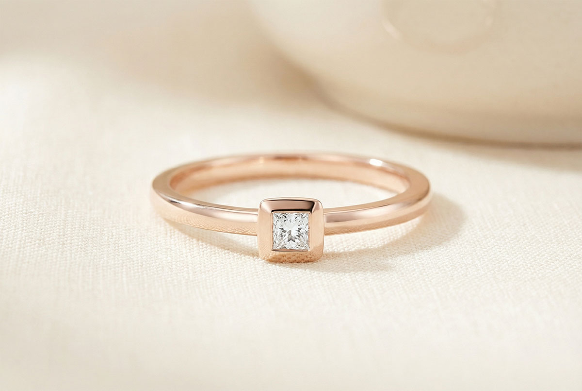 Ring Fraîcheur - Viereck - 9 Karat Roségold mit Diamant