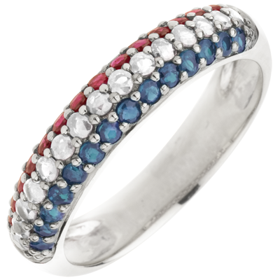 Außergewöhnlicher Ring aus Gold mit Diamanten und Edelsteinen, der die Französische Flagge darstellt.