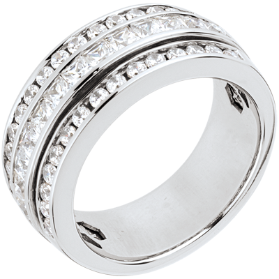 Seine drei Diamantreihen, seine Form und sein perfekter Glanz machen diesen Ring so außergewöhnlich. 43 Diamanten : 1.46 Karat - Weißgold (750/-): 12 g. Weitere Abmessungen