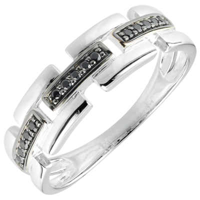 Ring Dämmerschein - Geheimer Weg - Weißgold, schwarzer Diamant - Kleines Modell 9 Karat