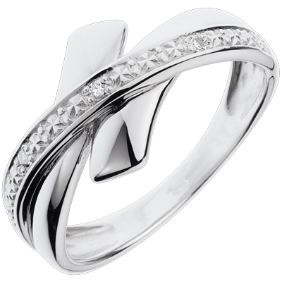 Dieser originelle Ring aus Weissgold mit Diamanten verzaubert die unvergesslichen Momente Ihres Lebens.