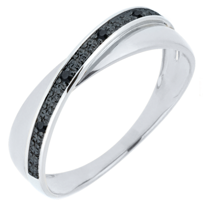 Ein goldener Ring wird auf elegante Weise von einem brillantbesetzten Band in Weißgold durchquert. Diamant : 0.02 Karat - Weißgold (750/-): 2.1 g. Schwarzer Diamant : 4 - Total: 0.02 Karat Weitere Abmessungen