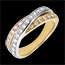 Der Ring ist aus 18 Karat Gold gefertigt und kombiniert drei Farben: Gelb-, Weiß- und Roségold für einen harmonischen und originellen Effekt.
