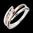 Das Mindestgewicht des Rings beträgt 2,6 Gramm, kombiniert aus Weiß- und Roségold 18 Karat.