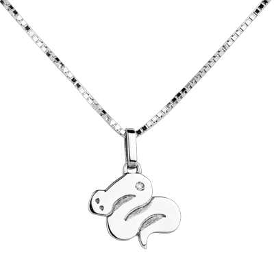 Eine weißgoldene Babyschlange macht sich auf in ihr erstes Abenteuer. Ihr Körper ist mit einem kleinen Diamanten geschmückt. Großes Modell. Ohne Kette. 1 Diamant : 0.05 Karat - Weißgold (750/-): 0.8 g. Weitere Abmessungen