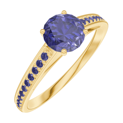 « L'ATELIER » NR. 1002208Ring Gelbgold 375/-(9Kt) - Synthetischer Saphir rund 0.5 Karat - Fassung Blauer Saphir 4.5 (16)