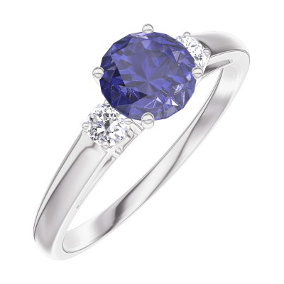 « L'ATELIER » NR. 1002214Ring Weißgold 375/-(9Kt) - Synthetischer Saphir rund 0.5 Karat - Seitliche Steine Labordiamant 4.5 (16)