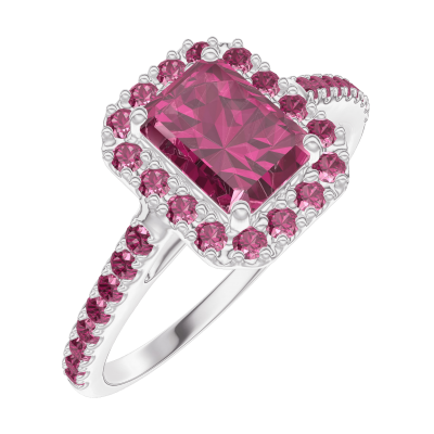 « L'ATELIER » NR. 1006475Ring Weißgold 375/-(9Kt) - Synthetischer Rubin Rechteckig 0.5 Karat - Halo Rubin - Fassung Rubin 4.7