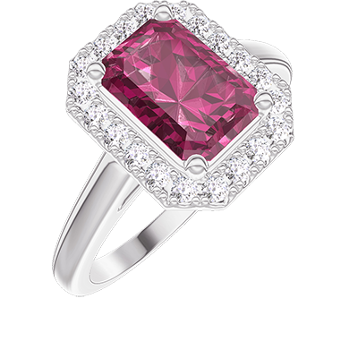 « L'ATELIER » NR. 1301825Ring Weißgold 750/-(18Kt) - Synthetischer Rubin Rechteckig 1 Karat - Halo Labordiamant