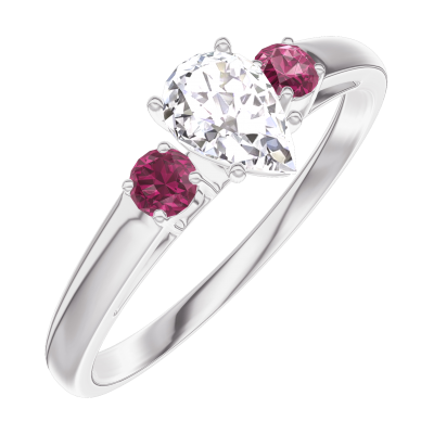 « L'ATELIER » NR. 160444Ring Weißgold 375/-(9Kt) - Diamant Tropfen 0.3 Karat - Seitliche Steine Rubin