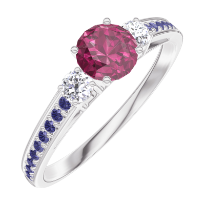 « L'ATELIER » Nº160636Ring Weißgold 375/-(9Kt) - Rubin rund 0.3 Karat - Seitliche Steine Diamant - Fassung Blauer Saphir 4.5