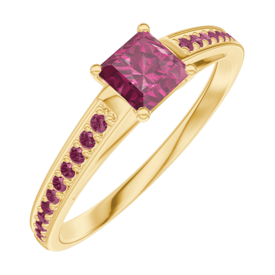 « L'ATELIER » NR. 160710Ring Gelbgold 375/-(9Kt) - Rubin Prinzess 0.3 Karat - Fassung Rubin