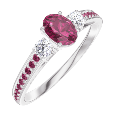 « L'ATELIER » NR. 160931Ring Weißgold 750/-(18Kt) - Rubin Oval 0.3 Karat - Seitliche Steine Diamant - Fassung Rubin 5