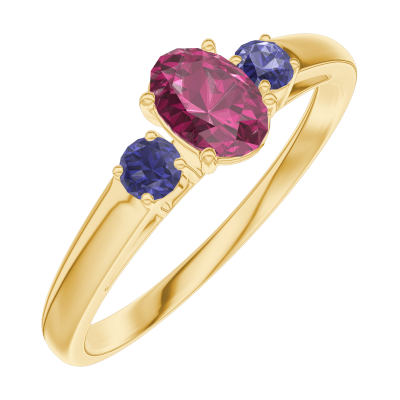 « L'ATELIER » Nº160962Ring Gelbgold 375/-(9Kt) - Rubin Oval 0.3 Karat - Seitliche Steine Blauer Saphir 5 (3)