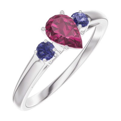 « L'ATELIER » NR. 161064Ring Weißgold 375/-(9Kt) - Rubin Tropfen 0.3 Karat - Seitliche Steine Blauer Saphir