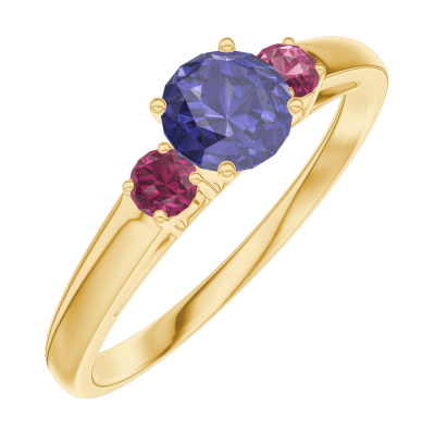 « L'ATELIER » NR. 161242Ring Gelbgold 375/-(9Kt) - Blauer Saphir rund 0.3 Karat - Seitliche Steine Rubin 4.5