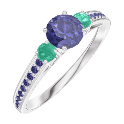 « L'ATELIER » NR. 161296Ring Weißgold 375/-(9Kt) - Blauer Saphir rund 0.3 Karat - Seitliche Steine Smaragd - Fassung Blauer Saphir 4.5