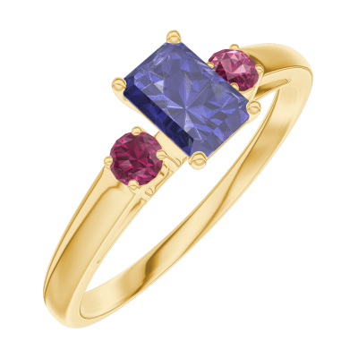« L'ATELIER » Nº161442Ring Gelbgold 375/-(9Kt) - Blauer Saphir Rechteckig 0.3 Karat - Seitliche Steine Rubin