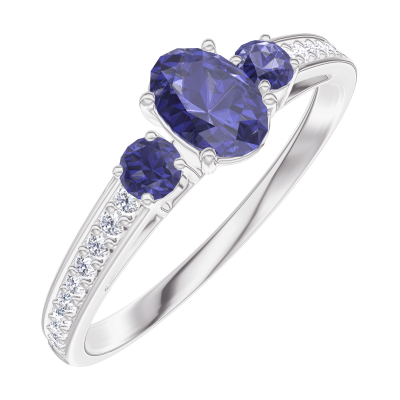 « L'ATELIER » NR. 161568Ring Weißgold 375/-(9Kt) - Blauer Saphir Oval 0.3 Karat - Seitliche Steine Blauer Saphir - Fassung Diamant 5